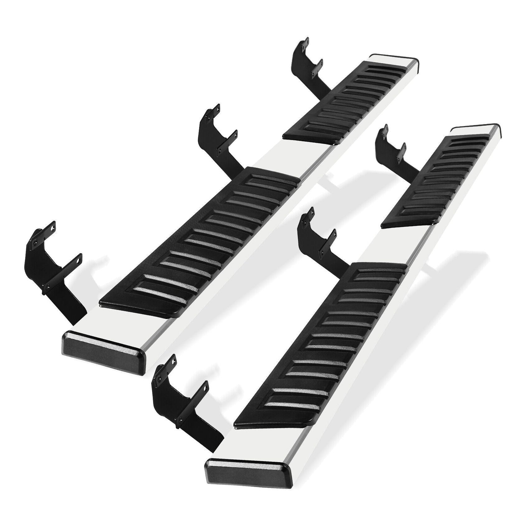 EASY TO INSTALL: Easy Bolt-on Installation. No Drilling Or Cutting Required. Mount The Mounting Brackets Under The Truck First Then The Running Boards. The Attaching Bolts Fit Into A Groove That Allows Them To Slide To The Proper Spot Then Torque Them Down And That's It!